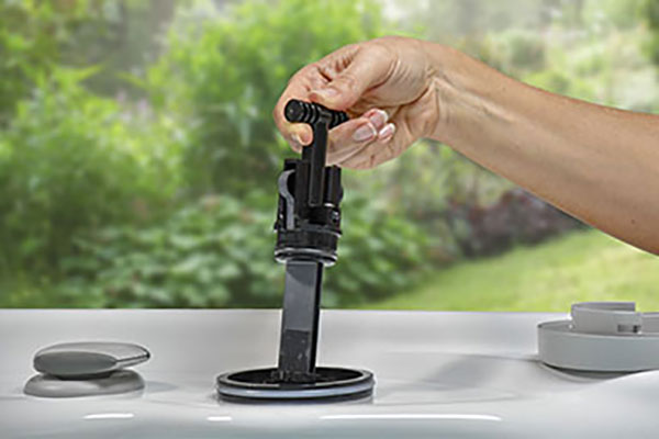 The disposable and maintenance-free titanium cartridge, hidden away in the spa, is easy to replace in just a few seconds, without tools.