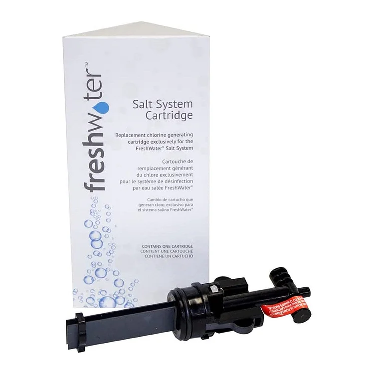 *Many factors affect the life of spa water, such as bather load and water chemistry. When these factors are accounted for and the spa is properly maintained, the FreshWater Salt System will keep water clean and clear for up to a full year. When purchasing replacement FreshWater Salt System Cartridges, beware of counterfeit product being sold on Amazon and other online marketplaces.