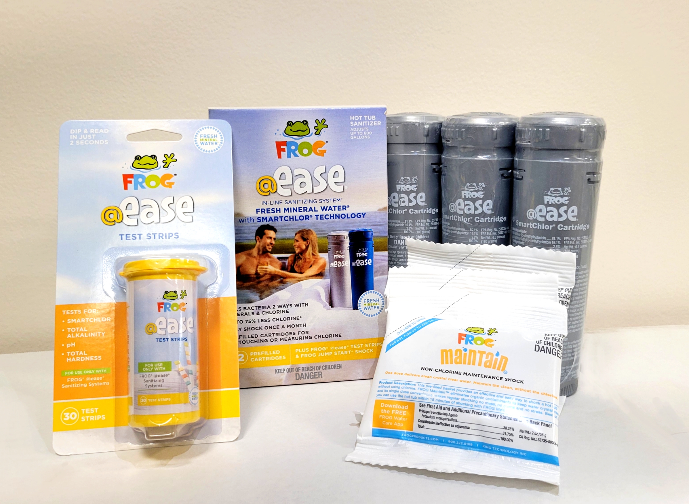 - @Ease Maintain 2 oz packages (3) – Keep your water balanced and clean with these specially formulated packets, designed to prevent buildup and maintain water clarity.