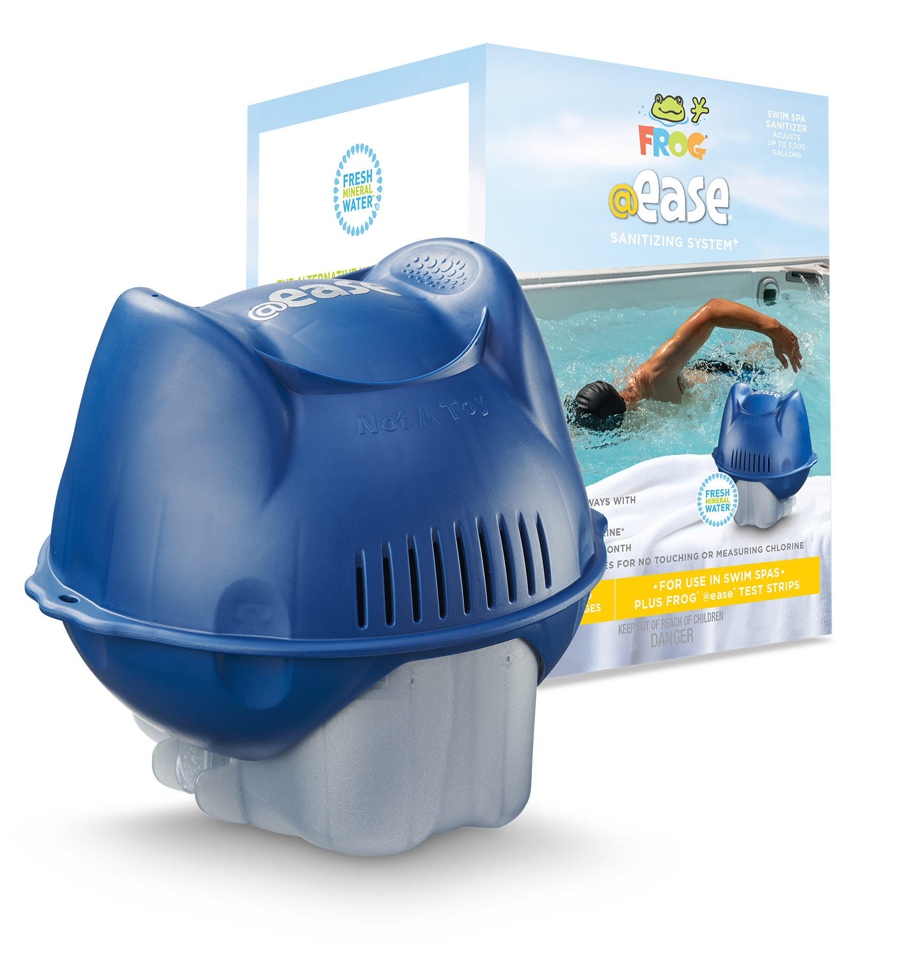 Introducing a breakthrough in sanitizing that comes ready to use on your hot tub. With the FROG @ease Floating System, you simply snap together the  conveniently adjustable floating cartridges and enjoy weeks of cleaner, clearer and softer water. FROG @ease uses FROG Minerals and SmartChlor® Technology that creates Fresh Mineral Water® by killing bacteria two ways with up to 75% less chlorine and a lot less work!