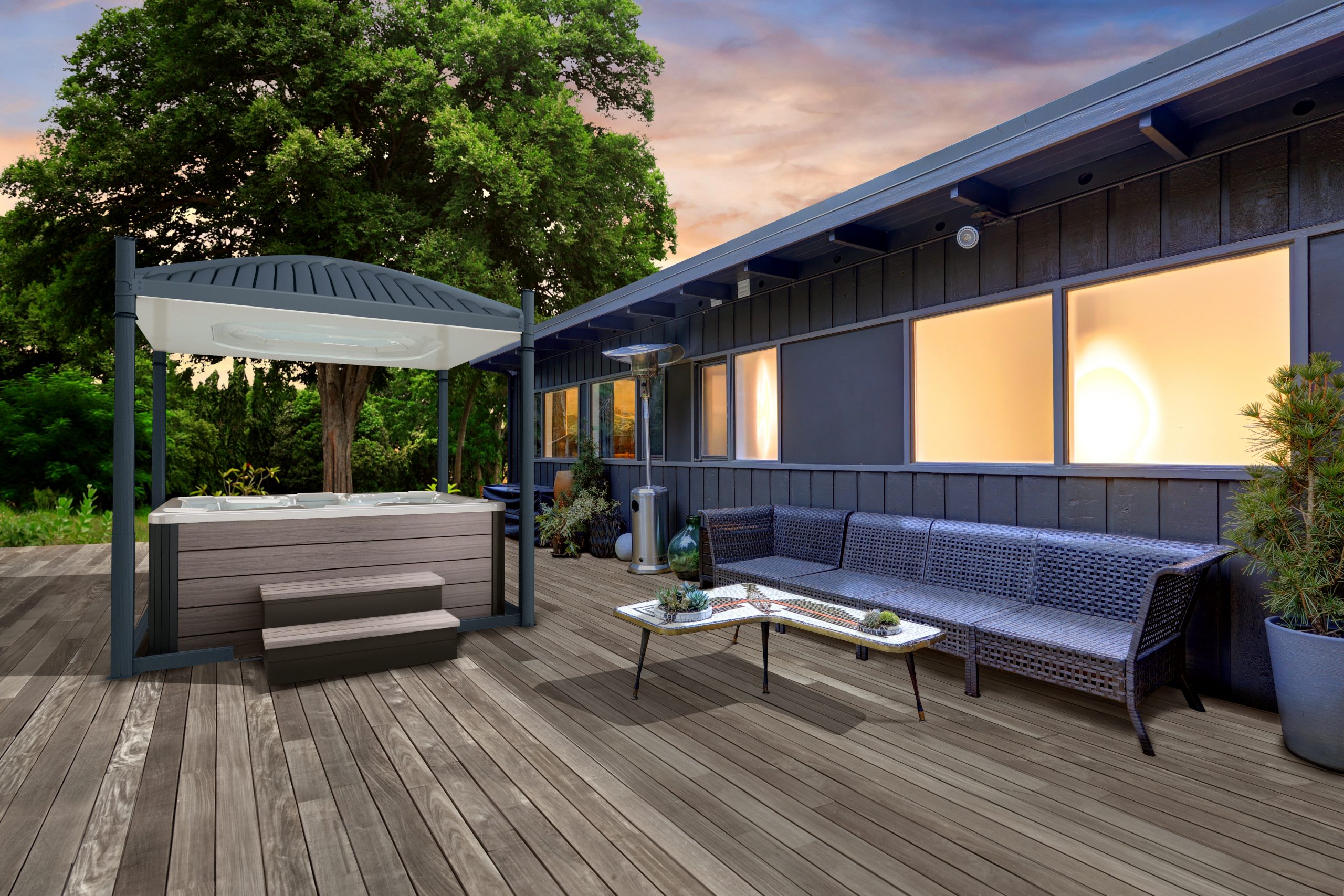 Turn your backyard hot tub into a relaxing refuge.